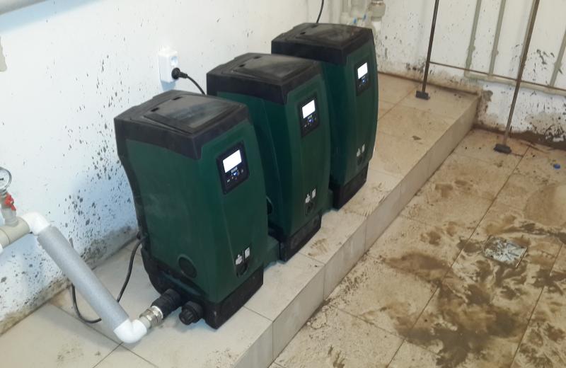 A request was received for a water supply system for a 9-floor building with 126 apartments.Due to the large size of the building, the system was split into two sections - each with three Esybox -, the first one meeting the water requirements of 54 apartments, and the second of 72 apartments. This pumping station solution was selected due to the reduced space requirements, the ease of installation, and the energy savings ensured by its variable frequency driver (inverter). Infact Esybox only uses the required energy based on the actual water demand, whilst at the same time providing constant pressure.